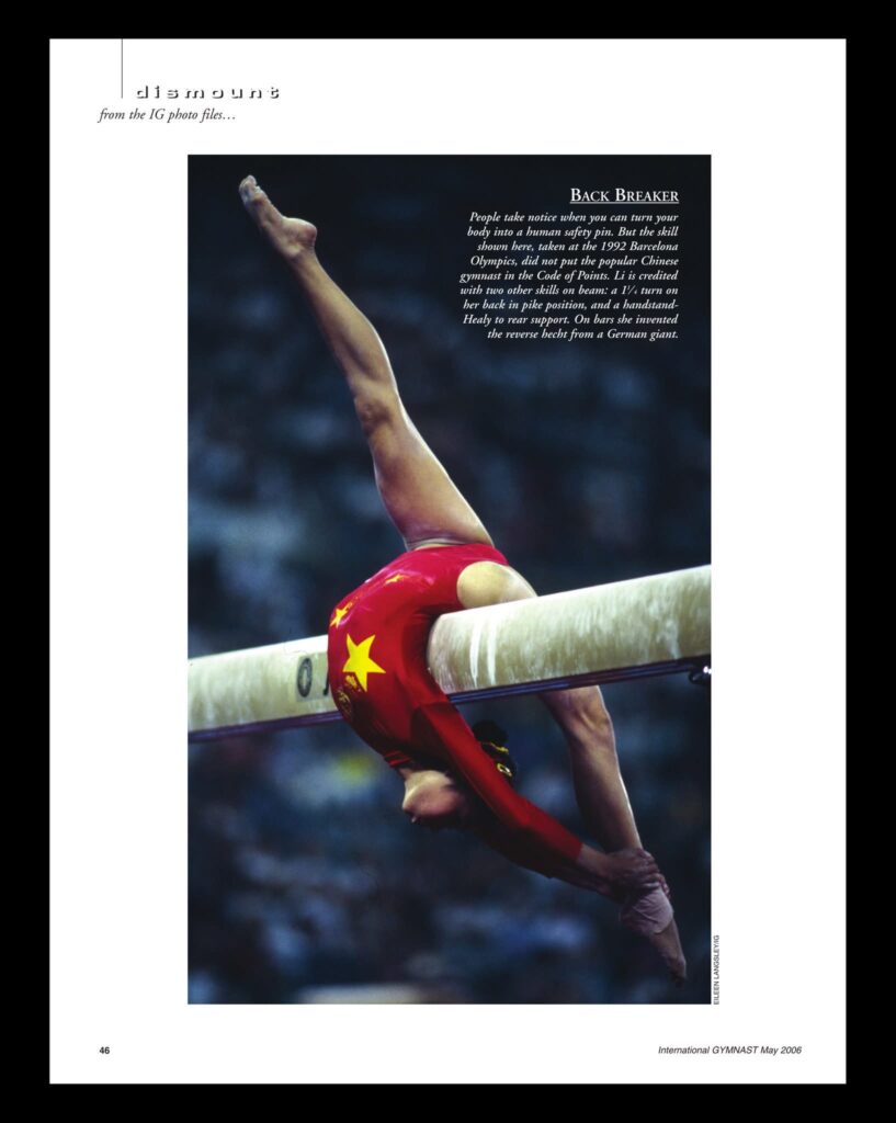 Even though Li Li never won a medal at the Olympics or World Championships, she remains a gymnastics icon. Her uneven bars routine was something special: German giants directly connected to a Tkatchev, borrowing an old skill from men’s high bar and adding a release to the end. On beam, she unveiled a back spin that few gymnasts could execute cleanly on the floor, let alone on ten centimeters of suede. And then there is the photograph: Li Li, draped over the balance beam, back arched, legs in a perfect split. For a generation of fans, that image is Chinese gymnastics at the dawn of the 1990s.