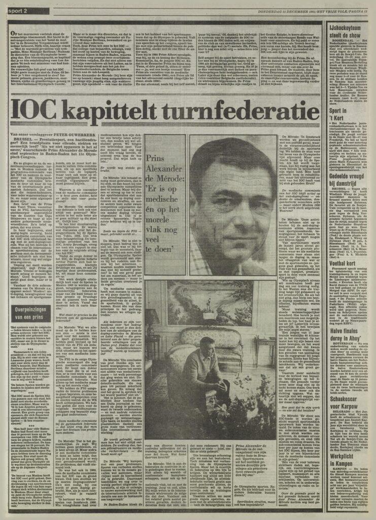 The documents that follow illustrate this moment of interpretive overlap. The first is a brief report on an IOC Executive Committee meeting held in late 1981; the second is a lengthy interview with Prince Alexander de Mérode, then head of the IOC Medical Commission. Together, they show how age, doping, and women’s health were discussed not as separate issues, but as facets of the same unresolved problem.