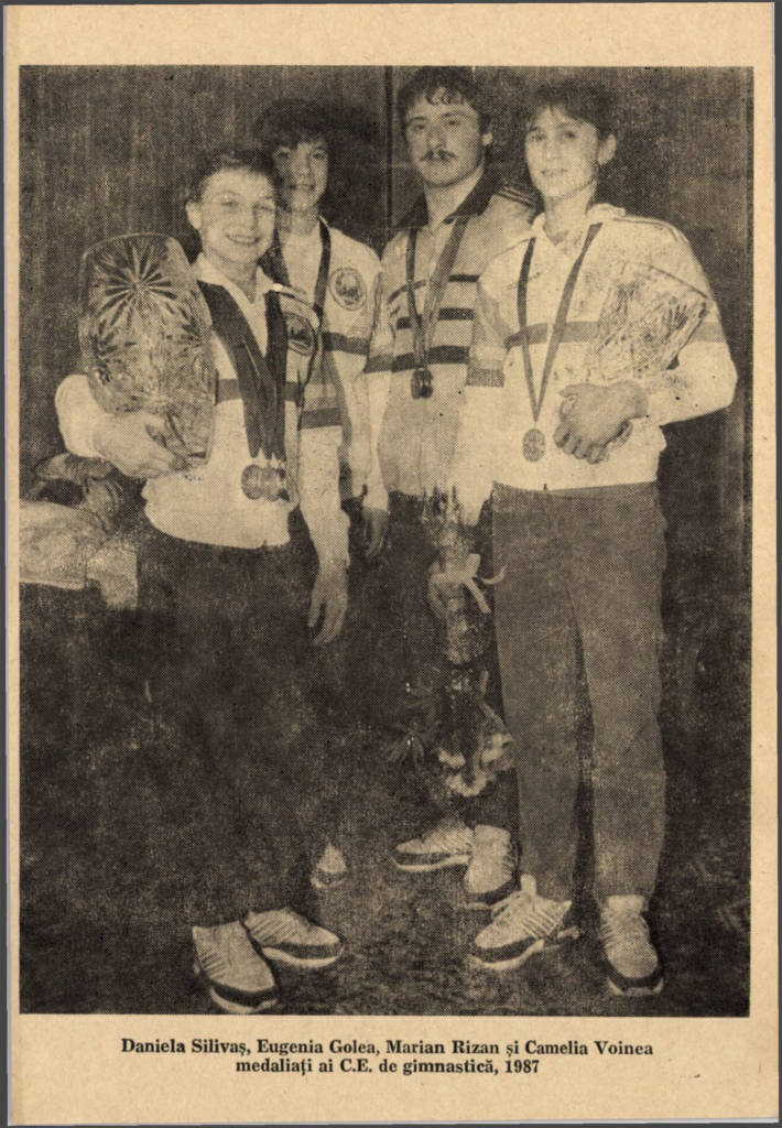 Daniela Silivaș, Eugenia Golea, Marian Rizan, and Camelia Voinea, 1987 European Championships. Source: Educaţie Fizică şi Sport, no. 6, 1987