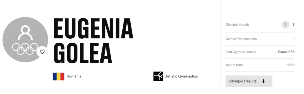 Take Eugenia Golea. She was born in 1971, yet her first senior World Championship medals came in 1985. To be fifteen at those championships, she would have needed a 1970 birth year. But that was not the date under which she competed. Instead, Golea was officially registered as having been born in 1969, making her eligible for the Los Angeles Games. However, for Golea, things never quite came together in 1984.