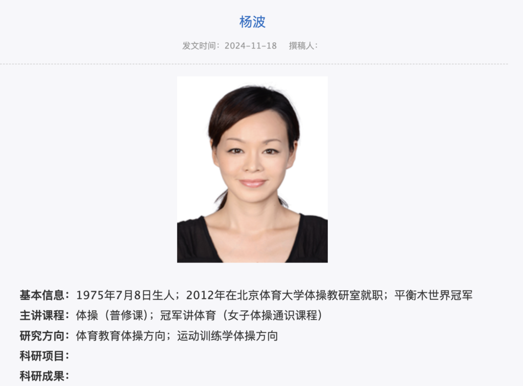 Note: The interview itself appears to assume a 1974 birth year, while Yang Bo’s Beijing Sport University profile lists 1975.