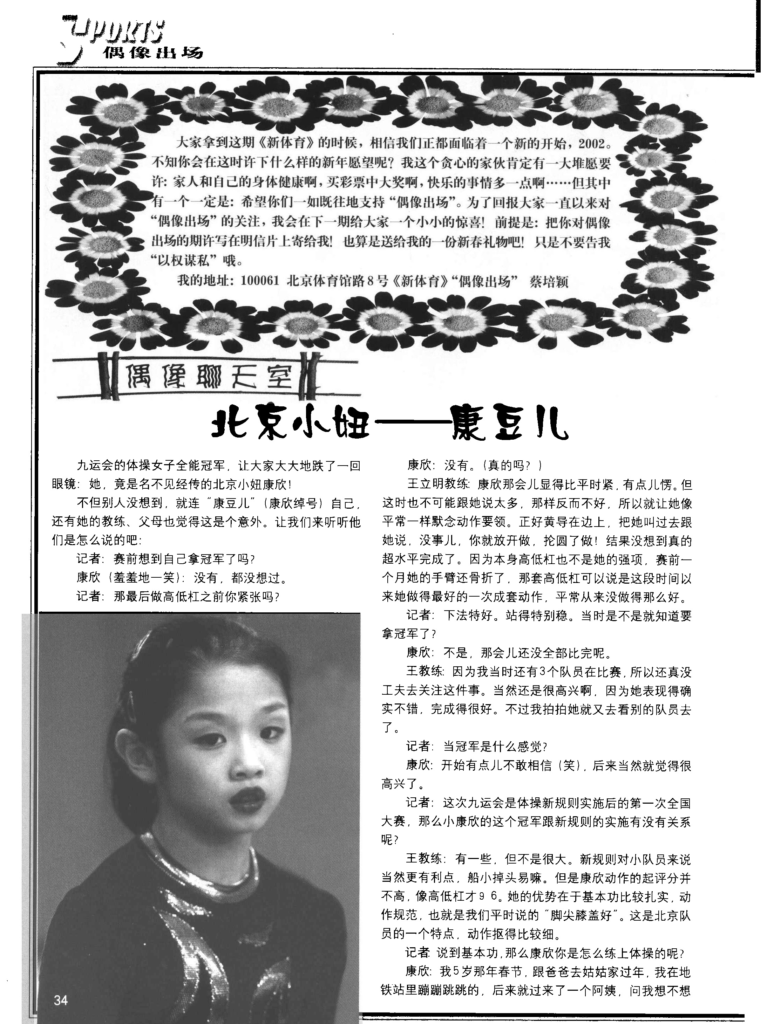 New Sports, September 1, 2002, 运动队里的小萝卜头, “”The Little Turnip Head of the Sports Team”